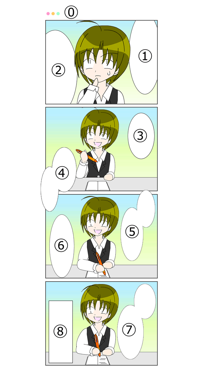 ・あくまで台詞、または吹き出し外の効果音で4コマを成立させて下さい
